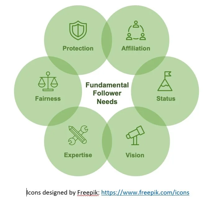 A previously established framework identified and described three fundamental follower needs: the needs for protection, guidance, and fairness. Building on this original set, this project first created a more complete model of follower needs. A literature search revealed two additional fundamental needs that leaders can meet: status and affiliation. Moreover, guidance turned out to consist of two separable needs: vision and expertise, resulting in a comprehensive set of six fundamental follower needs.